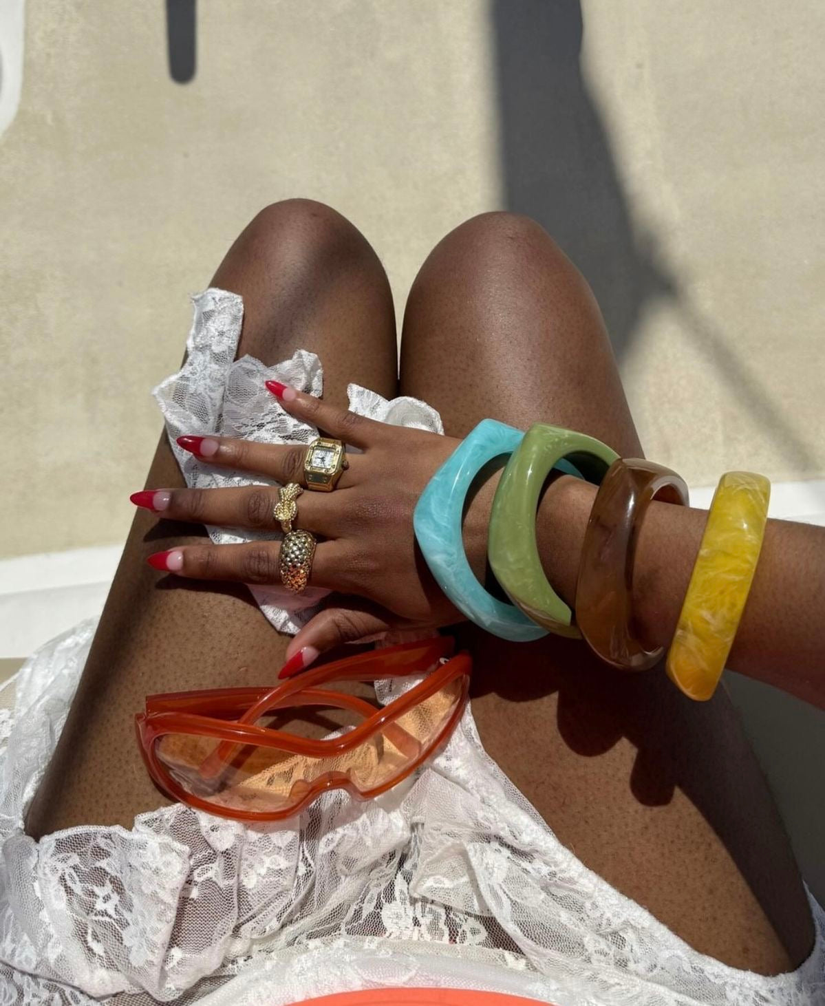Apportez une touche de style moderne à votre look avec ce bracelet en acrylique tendance.